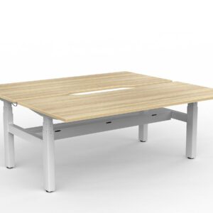 OL Agile Motion+ Electric Height Adjustable Shared Desk – Oak Top White Frame – L1800 X D800 / With Cable Tray