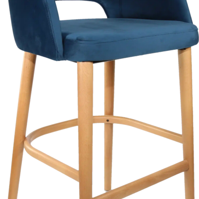 FL Sorbet Velvet Upholstered Timber Legs Hospitality Barstool – Denim / Trojan Oak